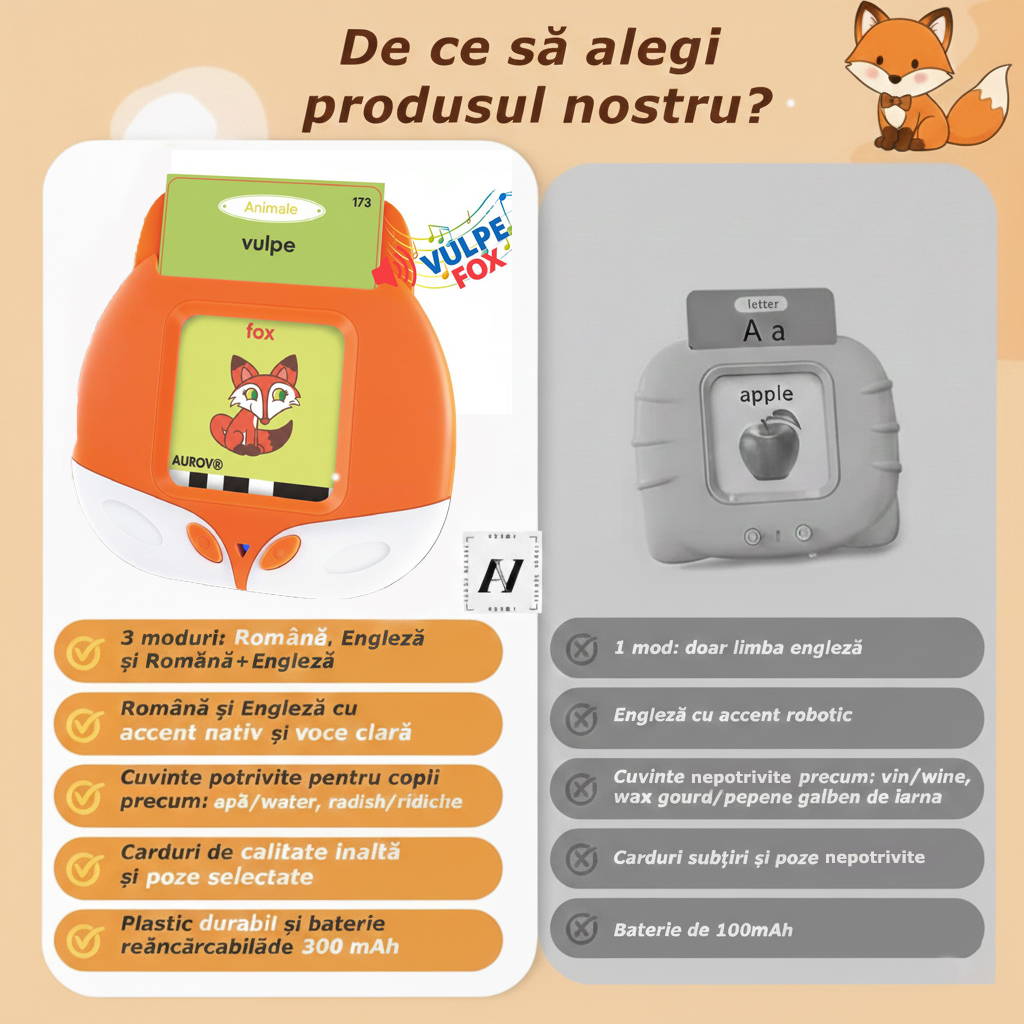 👉 Vulpița Bilingvă: Pentru primele cuvinte rostite cu mândrie în română și engleză.